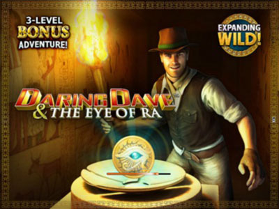 If you prefer exciting bonus action then Daring Dave & The Eye Of Ra is the online pokie for you. Daring Dave appears on reels 2, 3 and 4 as an expanding wild symbol. It also awards the highest line payouts. The thematic symbols include icons of the Egyptian deities Ra, Anubis and Thoth and also lion and scarab. The game logo awards scatter payouts multiplied by the total bet. The multi-level bonus feature titled The Quest for the Eye of Ra is activated by the pyramid symbol. At each level players must complete a task to move nearer to the Eye of Ra chamber. At the first level you must reveal three Eye of Ra symbols to open the door. Each time the bonus game is triggered you are given three picks. When you have found all three Eye of Ra symbols you move to the next level. In the second level you have to spin a wheel and light up three pointers. Each time you trigger the bonus feature you are given three spins. You can win payout multipliers while you try to clear the level. In the final level you have to select one from three pedestals. The right pedestal will take you to the Eye of Ra chamber and the grand prize. Incorrect choices mean you go to back to the main game and wait to trigger the bonus again.