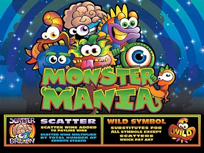 Monster Mania is a simple old fashioned online pokie with no fancy win animations and no bonus features. It has attractive and imaginative designing of the symbols. The treats are the low paying symbols and in a throwback to the classic pokies these are various fruits. The high paying symbols are monsters. They are the most unusual set of monsters that you will encounter but have been depicted in a cute manner. The one with the highest payouts resembles a brightly coloured fur ball. There is the usual wild symbol. The scatter symbol is a monster brain and is appropriately called scatter brain.