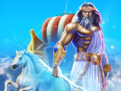 Three or more scatter symbols trigger the free games feature. You are awarded 10 free games that start with a 2x payout multiplier. After every two spins the payout multiplier will increase by 1. All wins in a spin will be multiplied by the multiplier value for that spin. The Zeus symbols appears as an extra wild on the centre row of the third reel and remains locked in that position for the entire feature. The free spins cannot be retriggered.