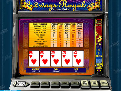Online casino players who wager regularly on Jacks or Better would be aware of the optimum strategy required to maximise average returns. You need to apply the same strategy for Two Ways Royal. The decisions that are to be made for Hi Royal Flush, also apply for Lo Royal Flush. For example, in Jacks or Better if you hold four cards to a royal flush then you discard the fifth card even if it contributes to a paying combination. In Two Ways Royal if you hold four cards to a Hi Royal Flush or to a Lo Royal Flush then you discard the fifth card.