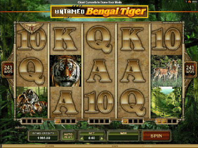 The leading online casino software provider Microgaming often releases online pokies in a series. The pokies have almost identical structures and different variations of a common theme. The Microgaming Untamed online pokies form one such series. Rugged uninhabited terrain and wild animals facing extinction are the subject matter of these video pokies. Apart from providing entertainment, Microgaming also wants to send a message about their predicament. The titles are Bengal Tiger, Giant Panda, Wolf Pack and Crowned Eagle. All these Untamed series slot games can be played at Microgaming online casinos like Casino Mate, Royal Vegas and Jackpot City.
