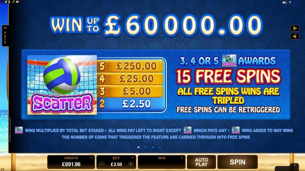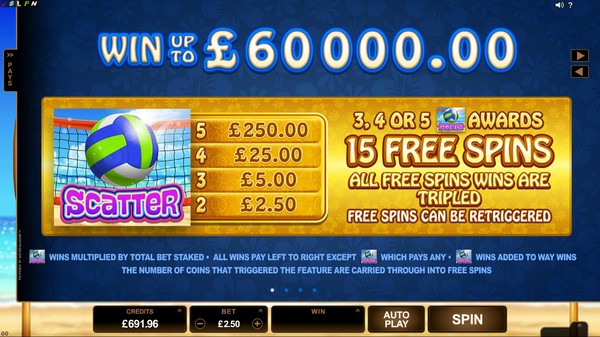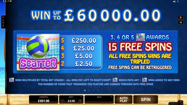 • The popular beach theme is further enhanced by bikini clad volleyball players who engage in some nifty win animations.
