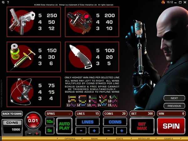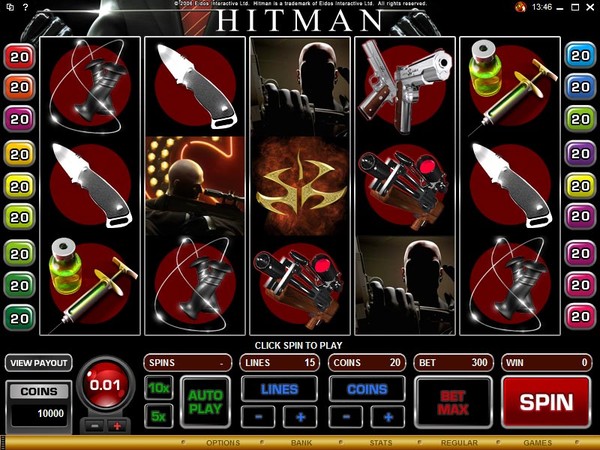 • Hitman is a branded online pokie from Microgaming based on the Eidos Interactive video game