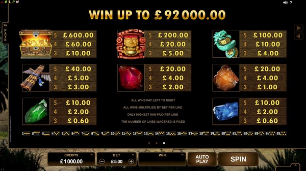 There’s no way that you can adjust how many paylines each spin is played with and this means that each spin will always be played with the full 25 paylines active. Therefore the lowest cost per spin will set you back just 0.25 and the max cost per spin is fixed at 25.00 coins. This relatively wide betting range is therefore suitable for most budgets. This game also has a massive fixed coin jackpot worth 92,000.00 coins up for grabs.